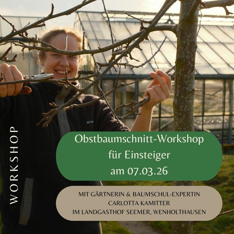 Gemeinsam mit der ausgebildeten Gärtnerin Carlotta Kamitter (Fachrichtung Baumschule) tauchst du praxisnah in die Welt des Obstbaumschnitts ein - verständlich erklärt, mit viel Raum für Fragen und direkt am Baum umgesetzt.