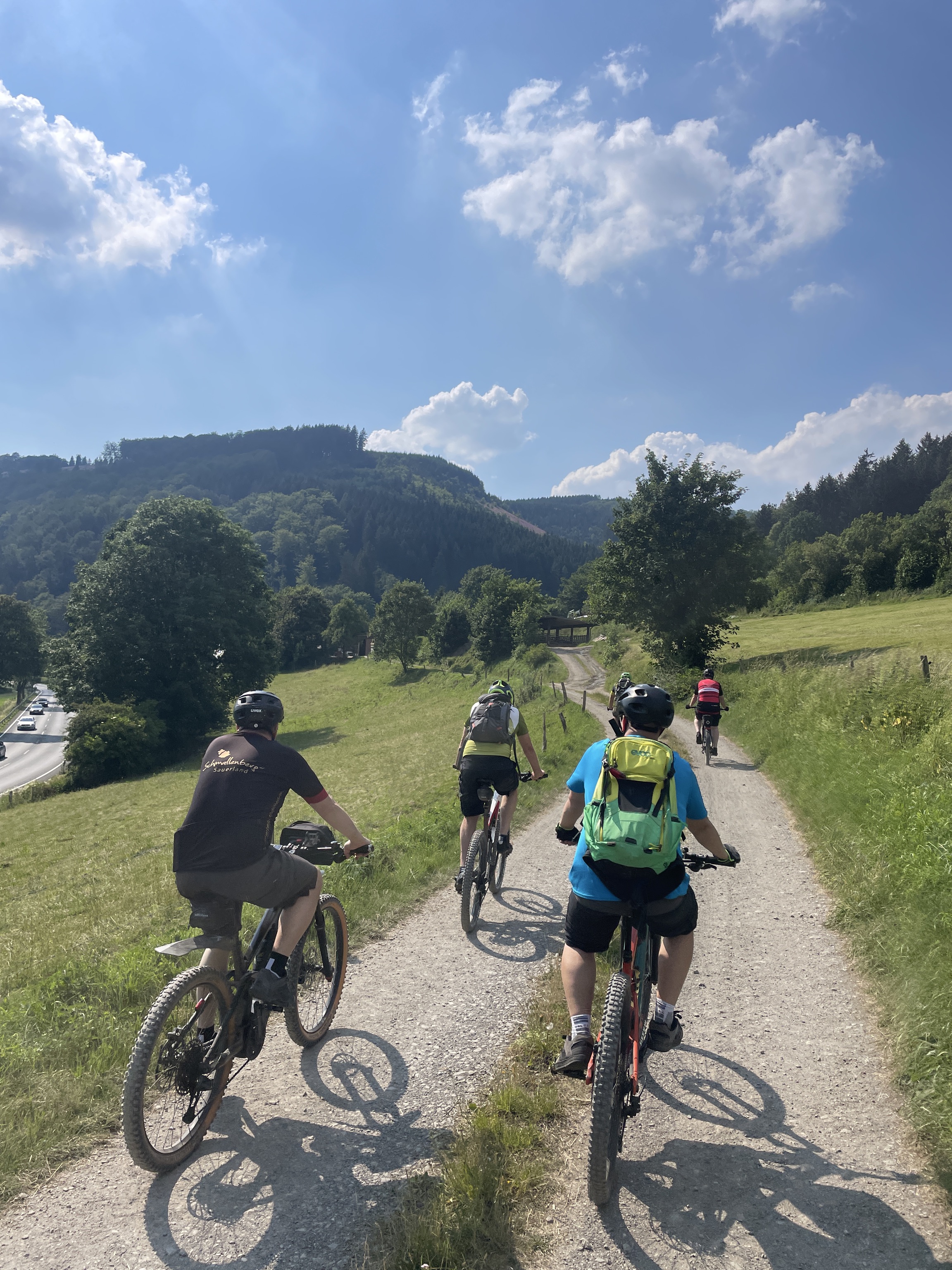 Nach etwa der Hälfte der Tour bietet sich eine Einkehrmöglichkeit, um neue Energie zu tanken, bevor es weiter durch Hügel und Täler zurück Richtung Schmallenberg geht. Unterwegs sorgt der Guide nicht nur für die perfekte Streckenwahl, sondern auch für einen Fotoservice, damit du ein persönliches Andenken an dein Bike-Abenteuer mit nach Hause nimmst.